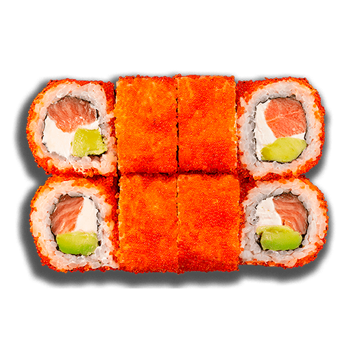 Рис, нори, сливочный сыр, креветка в кляре, салат айсберг, икра Масаго, огурец, соус Сладкий чили